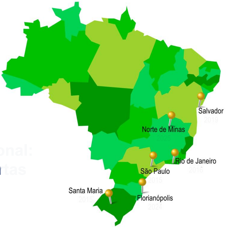 2024 – Florianópolis (SC), com a criação de um novo Núcleo com a Universidade Federal de Santa Catarina